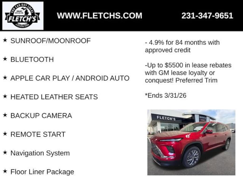 The 2026 Buick Enclave Preferred is a sophisticated and versatile SUV that offers a premium driving experience. With its sleek red exterior and a powerful 2.5L DOHC engine paired with an 8-speed automatic transmission and all-wheel drive, this Enclave delivers impressive performance and efficiency, achieving up to 24 mpg on the highway.