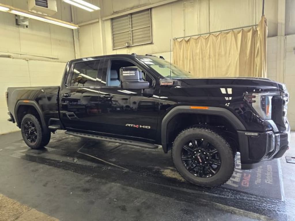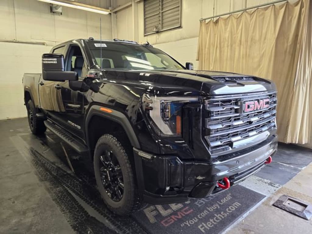 Onyx Black 2025 GMC Sierra 2500HD AT4 4D Crew Cab 4WD Duramax 6.6L V8 Turbodiesel 10-Speed Automatic Sierra 2500HD AAT4, 4D Crew Cab, Duramax 6.6L V8 Turbodiesel, 10-Speed Automatic, 4WD, Onyx Black, Jet Black With Kalahari Accents Leather, 120-Volt Bed Mounted Power Outlet, 120-Volt Instrument Panel Power Outlet, 2 Charge-Only Rear USB Ports, 2 Charge/Data USB Ports Inside Center Console, 2 USB Ports, 2-Speed Active Transfer Case, 220-Amp Alternator, AT4 Preferred Package, AT4 Premium Plus Package, Bed View Camera w/2 Trailer Camera Provisions, Bose Premium 7-Speaker Sound System, Deep-Tinted Glass, Electric Rear-Window Defogger, Floor-Mounted Center Console, Front Prem Floor Liners w/Removable Carpet Insert, Front Rain-Sensing Wipers, Gloss Black Header Grille & Grille Insert Bars, Gooseneck/5th Wheel Prep Package, HD Surround Vision, Heated 2nd Row Outboard Seats, Heated Driver & Front Outboard Passenger Seats, Hill Descent Control, Inside Rearview Auto-Dimming Rear Camera Mirror, Keyless Open & Start, LED Cargo Area Lighting, LED Smoked Amber Roof Marker Lamps, Manual Tilt-Wheel/Telescoping Steering Column, Multicolor 15 Diagonal Head-Up Display, Off-Road High Clearance Step (LPO), OnStar Services Capable, Power Front Passenger Windows w/Express Up/Down, Power Sliding Rear Window w/Defogger, Power Sunroof, Preferred Equipment Group 4SB, Push Button Start, Rear Cross Traffic Alert, Rear Prem Floor Liners w/Removable Carpet Insert, Rear Wheelhouse Liners, Remote Vehicle Starter System, Safety Alert Seat, SiriusXM w/360L Trial Subscription, Snow Plow Prep/Camper Package, Spray-On Pickup Bedliner w/GMC Logo, Steering Wheel Audio Controls, Technology Package, Trailer Cam Provisions & Trailer Viewing Software, Trailer Side Blind Zone Alert, Ultrasonic Front & Rear Park Assist, Unauthorized Entry Theft-Deterrent System, Universal Home Remote, Ventilated Driver & Front Passenger Seats, Wireless Charging, Wireless Phone Projection, X31 Off-Road Package.