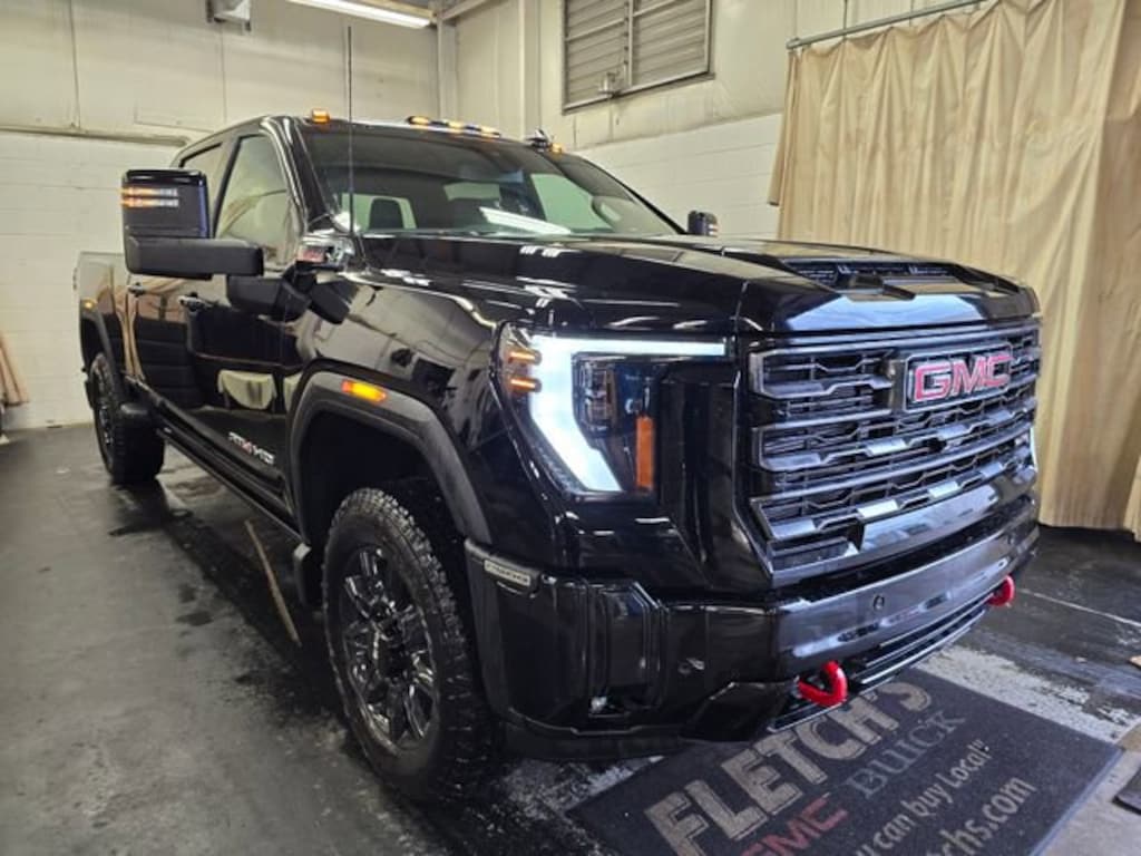 Onyx Black 2025 GMC Sierra 2500HD AT4 4D Crew Cab 4WD Duramax 6.6L V8 Turbodiesel 10-Speed Automatic Sierra 2500HD AAT4, 4D Crew Cab, Duramax 6.6L V8 Turbodiesel, 10-Speed Automatic, 4WD, Onyx Black, Jet Black With Kalahari Accents Leather, 120-Volt Bed Mounted Power Outlet, 120-Volt Instrument Panel Power Outlet, 2 Charge-Only Rear USB Ports, 2 Charge/Data USB Ports Inside Center Console, 2 USB Ports, 2-Speed Active Transfer Case, 220-Amp Alternator, AT4 Preferred Package, Bed View Camera w/2 Trailer Camera Provisions, Bose Premium 7-Speaker Sound System, Deep-Tinted Glass, Electric Rear-Window Defogger, Floor-Mounted Center Console, Front Prem Floor Liners w/Removable Carpet Insert, Front Rain-Sensing Wipers, Gloss Black Header Grille & Grille Insert Bars, Gooseneck/5th Wheel Prep Package, HD Surround Vision, Heated 2nd Row Outboard Seats, Heated Driver & Front Outboard Passenger Seats, Hill Descent Control, Keyless Open & Start, LED Cargo Area Lighting, LED Smoked Amber Roof Marker Lamps, Manual Tilt-Wheel/Telescoping Steering Column, OnStar Services Capable, Power Front Passenger Windows w/Express Up/Down, Power Sliding Rear Window w/Defogger, Preferred Equipment Group 4SB, Push Button Start, Rear Cross Traffic Alert, Rear Prem Floor Liners w/Removable Carpet Insert, Rear Wheelhouse Liners, Remote Vehicle Starter System, Safety Alert Seat, SiriusXM w/360L Trial Subscription, Snow Plow Prep/Camper Package, Spray-On Pickup Bedliner w/GMC Logo, Steering Wheel Audio Controls, Trailer Cam Provisions & Trailer Viewing Software, Trailer Side Blind Zone Alert, Ultrasonic Front & Rear Park Assist, Unauthorized Entry Theft-Deterrent System, Universal Home Remote, Ventilated Driver & Front Passenger Seats, Wireless Charging, Wireless Phone Projection, X31 Off-Road Package.