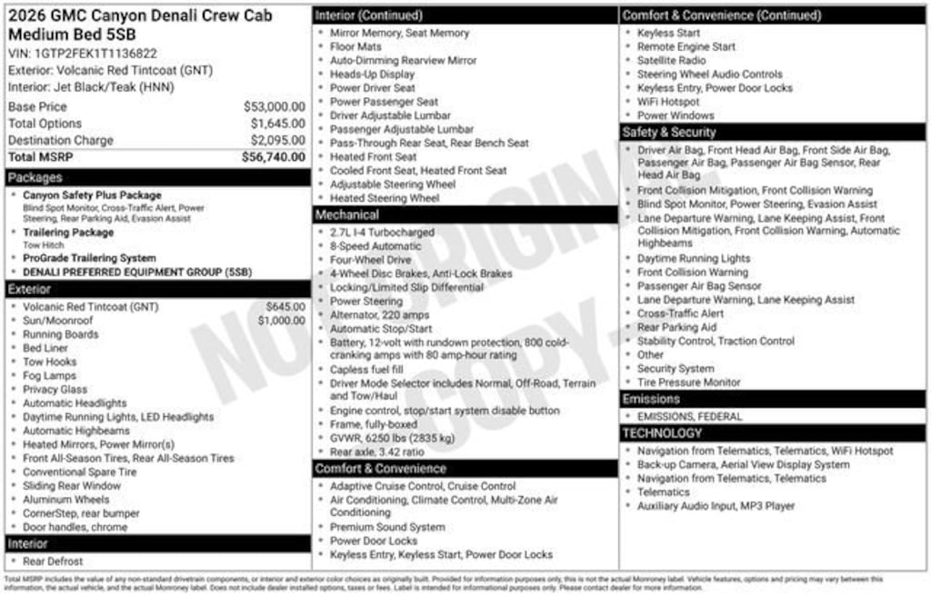 Recent Arrival! Volcanic Red Tintcoat 2026 GMC Canyon Denali 4D Crew Cab 4WD 2.7L I4 Turbocharged DOHC 16V LEV3-SULEV30 310hp 8-Speed Automatic