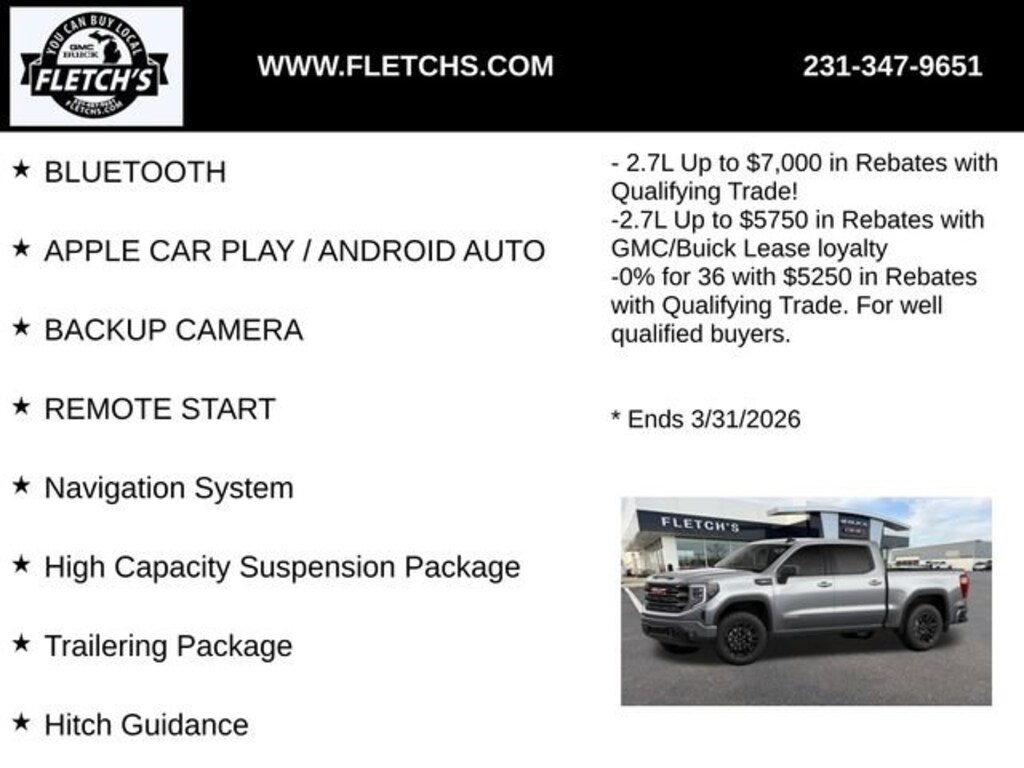 Whether you're tackling tough terrain, towing heavy loads, or simply enjoying the open road, the 2026 GMC Sierra 1500 Elevation is the ultimate companion. Experience the power, capability, and sophistication that this exceptional truck has to offer. Visit our showroom today and let us help you find the perfect Sierra 1500 Elevation to meet your needs. Price includes: $1500 - Purchase Allowance. Exp. 01/02/2026 $1750 - Bonus Cash. Exp. 01/02/2026 $250 - Bonus Cash. Exp. 01/02/2026