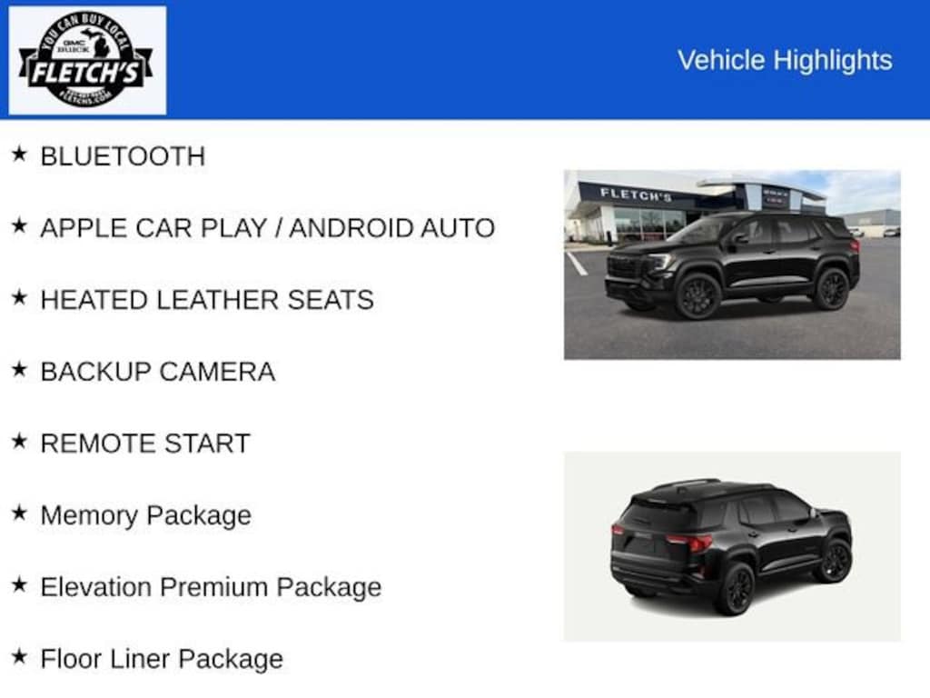 Designed with your comfort and convenience in mind, the Terrain Elevation boasts a wealth of advanced features, including a premium infotainment system with wireless Apple CarPlay and Android Auto, a heated steering wheel, and a hands-free programmable power liftgate. The spacious interior and versatile cargo area make it the ideal companion for all your adventures, whether you're commuting to the office or embarking on a weekend getaway.