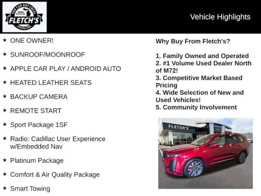 ONE OWNER!, SUNROOF/MOONROOF, APPLE CAR PLAY / ANDROID AUTO, HEATED LEATHER SEATS, BACKUP CAMERA, REMOTE START, XT6 Sport, 4D Sport Utility, 3.6L V6 DI VVT, 9-Speed Automatic, AWD, Infrared Tintcoat, Maple Sugar Leather, 8 Color Driver Information Center Display, Adaptive Cruise Control, Air Ionizer, Automatic Emergency Braking, Automatic Heated Steering Wheel, Automatic Parking Assist w/Braking, Automatic Seat Belt Tightening, Bose Performance Series Audio System, Bose Premium 8-Speaker Audio System, Comfort & Air Quality Package, Driver Assist Package, Dual Driver Information Center Display, Enhanced Automatic Emergency Braking, Front & Rear Park Assist, Front & Rear Premium Carpeted Floor Mats, HD Surround Vision, Head-Up Display, Heated Rear Outboard Seating Positions, Hitch Guidance, Hitch Guidance w/Hitch View, Inside Rear-View Auto-Dimming Mirror, Platinum Package, Radio: Cadillac User Experience w/Embedded Nav, Rear Camera Mirror, Rear Camera Mirror Washer, Rear Pedestrian Alert, Reverse Automatic Braking, Semi-Aniline Leather Seating Surfaces, Smart Towing, Sport Package 1SF, Surround Vision Recorder, Technology Package, Teen Driver, Ventilated Driver & Front Passenger Seats.