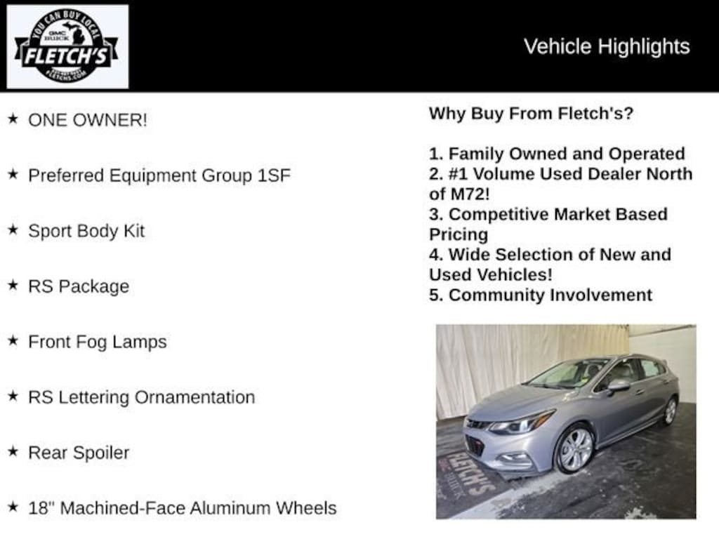 ONE OWNER!, Cruze Premier, 4D Hatchback, 1.4L 4-Cylinder Turbo DOHC CVVT, 6-Speed Automatic, FWD, Pepperdust Metallic, Dark Atmosphere/Medium Atmosphere Leather, 18 Machined-Face Aluminum Wheels, Front Fog Lamps, Preferred Equipment Group 1SF, Rear Spoiler, RS Lettering Ornamentation, RS Package, Sport Body Kit.