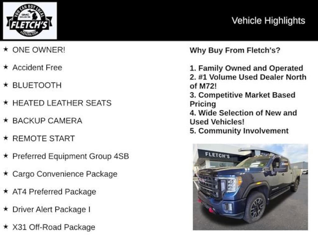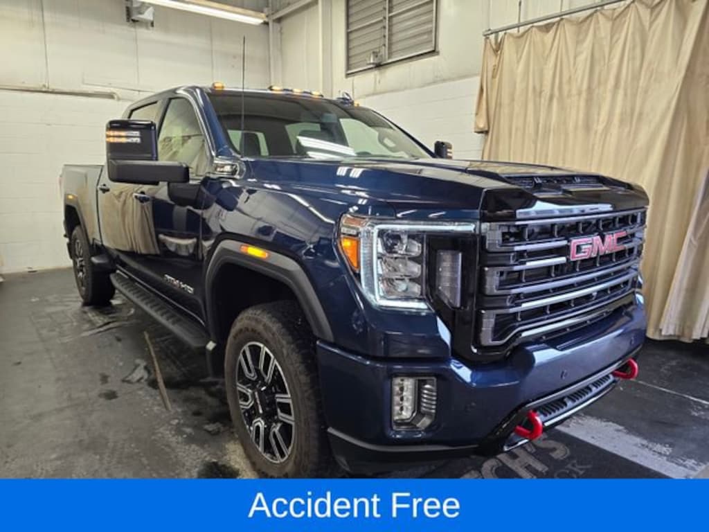 ONE OWNER!, Accident Free, BLUETOOTH, HEATED LEATHER SEATS, BACKUP CAMERA, REMOTE START, Sierra 2500HD AAT4, 4D Crew Cab, 6.6L V8, 6-Speed Automatic, 4WD, Pacific Blue Metallic, Jet Black With Kalahari Accents Leather, 12-Volt Rear Auxiliary Power Outlet, 120-Volt Bed Mounted Power Outlet, 120-Volt Instrument Panel Power Outlet, 2 USB Ports, 2 USB Ports (1st Row), 2-Speed Active Transfer Case, 2nd Row Dual USB Charge-Only Ports, 4.2 Diagonal Color Display Driver Info Center, AT4 Preferred Package, Bed View Camera w/2 Trailer Camera Provisions, Bose Premium 7 Speaker Sound System, Cargo Convenience Package, Compass Located In Instrument Cluster, Console-Mounted Safe (LPO), Deep-Tinted Glass, Driver Alert Package I, Electric Rear-Window Defogger, Electrical Lock Control Steering Column, Floor-Mounted Center Console, Front Prem Floor Liners w/Removable Carpet Insert, HD Rear Vision Camera, HD Surround Vision w/2 Trailer View Camera Provisions, Heated & Ventilated Front Bucket Seats, Heated Driver & Front Outboard Passenger Seats, Integrated Trailer Brake Controller, Keyless Open & Start, Lane Change Alert w/Side Blind Zone Alert, LED Cargo Area Lighting, LED Smoked Amber Roof Marker Lamps, Manual Tilt-Wheel/Telescoping Steering Column, OnStar & GMC Connected Services Capable, Painted Black Surround Grille, Perimeter Lighting, Power Door Locks, Power Front Passenger Windows w/Express Up/Down, Power Rear Windows w/Express Down, Power Sliding Rear Window w/Defogger, Power Windows w/Driver Express Up/Down, Preferred Equipment Group 4SB, Radio: AM/FM w/Prem GMC Infotainment System & Navi, Rear Cross Traffic Alert, Rear Prem Floor Liners w/Removable Carpet Insert, Rear Underseat Storage (LPO), Rear Wheelhouse Liners, Red Recovery Hooks, Remote Vehicle Starter System, Spray-On Pickup Box Bed Liner w/AT4 Logo, Steering Wheel Audio Controls, Ultrasonic Front & Rear Park Assist, Unauthorized Entry Theft-Deterrent System, Universal Home Remote, Wireless Charging, Wireless Phone Projection, X31 Off-Road Package.