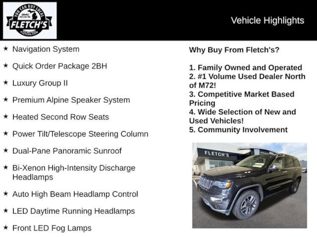 Grand Cherokee Limited, 4D Sport Utility, 3.6L V6 24V VVT, 8-Speed Automatic, 4WD, Diamond Black Crystal Pearlcoat, Black Leather, Auto High Beam Headlamp Control, Bi-Xenon High-Intensity Discharge Headlamps, Cargo Compartment Cover, Dual-Pane Panoramic Sunroof, Front LED Fog Lamps, Heated Second Row Seats, Leather Trimmed Seats w/Perforated Inserts, LED Daytime Running Headlamps, Luxury Group II, Navigation System, Power Tilt/Telescope Steering Column, Premium Alpine Speaker System, Quick Order Package 2BH, Rain Sensitive Windshield Wipers, Ventilated Front Seats.